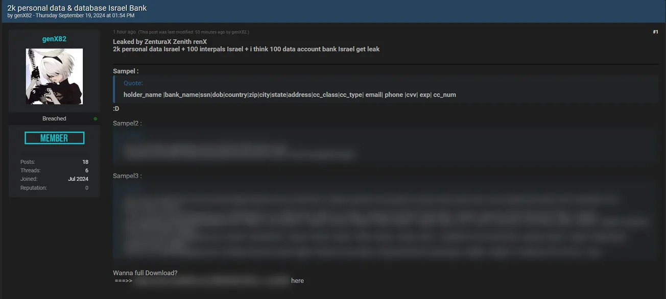 A Threat Actor Claims to have Leaked Personal Data on Israeli Individuals