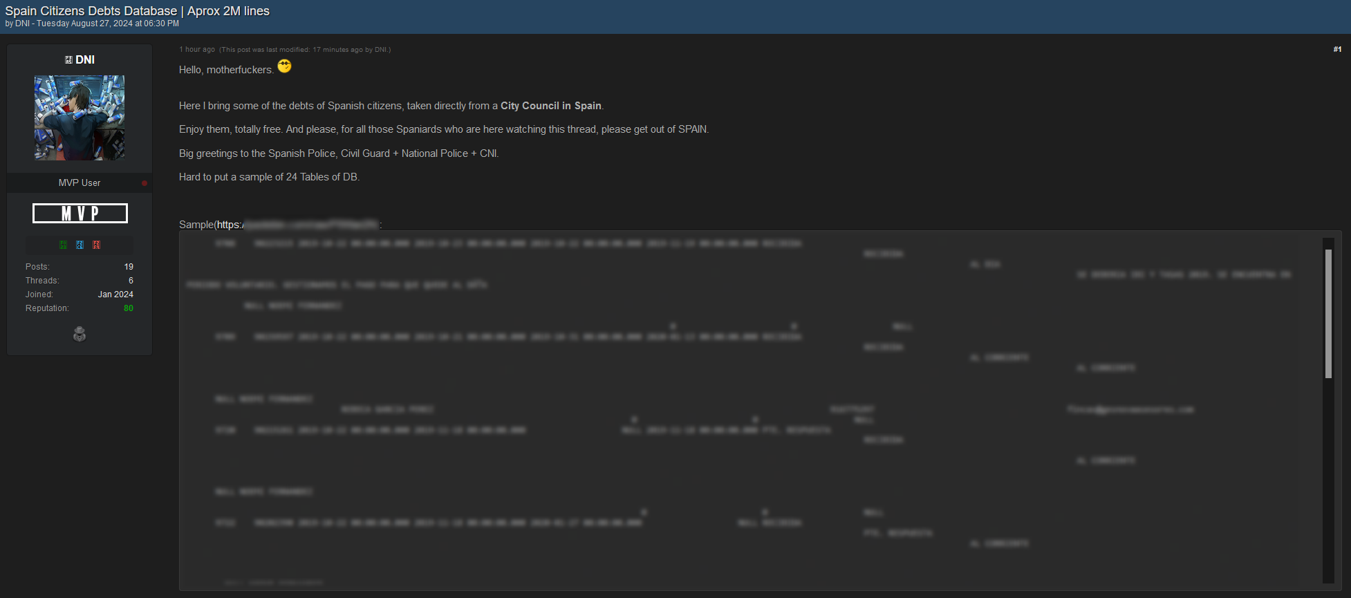 Big greetings to the Spanish Police, Civil Guard + National Police + CNI.