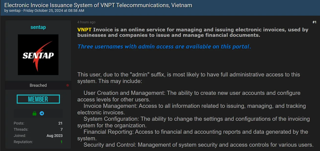 A Threat Actor Has Allegedly Leaked Admin Credentials of VNPT Telecommunications