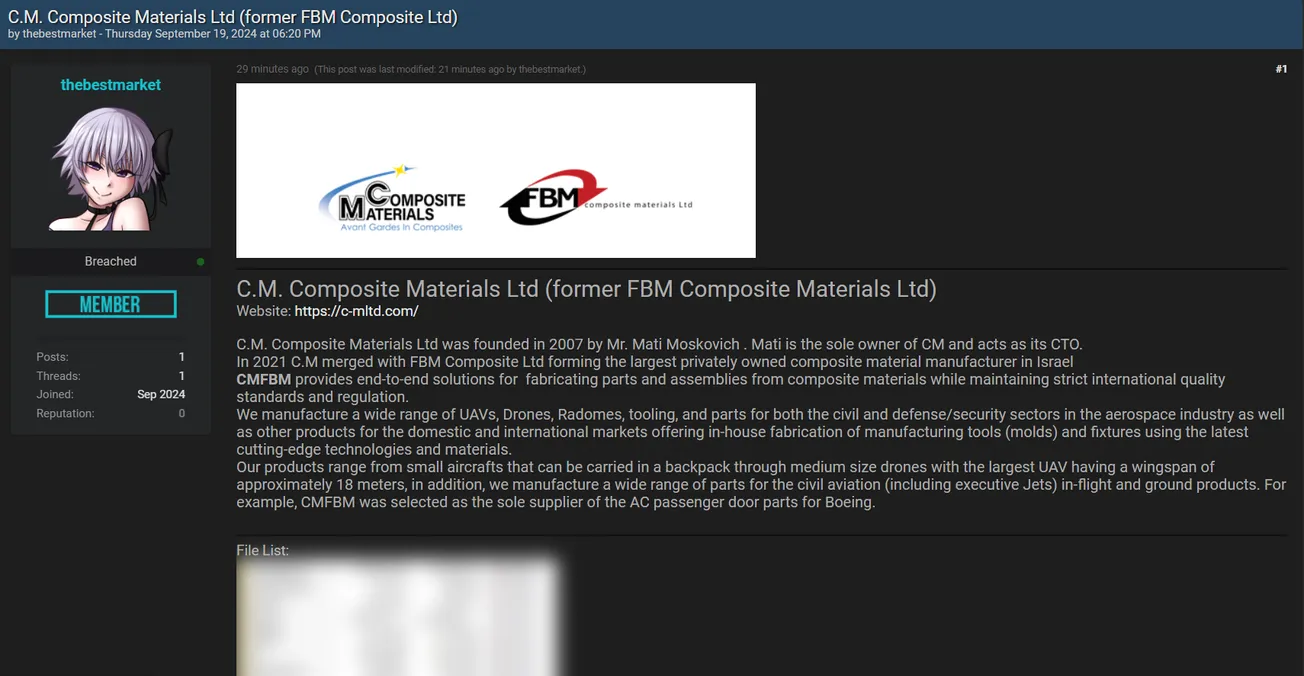 A Threat Actor has Allegedly Leaked C.M. Composite Materials Ltd Database
