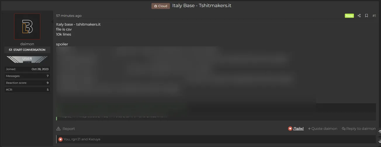 🚨 Title: Alleged data leak from T-shirtmakers