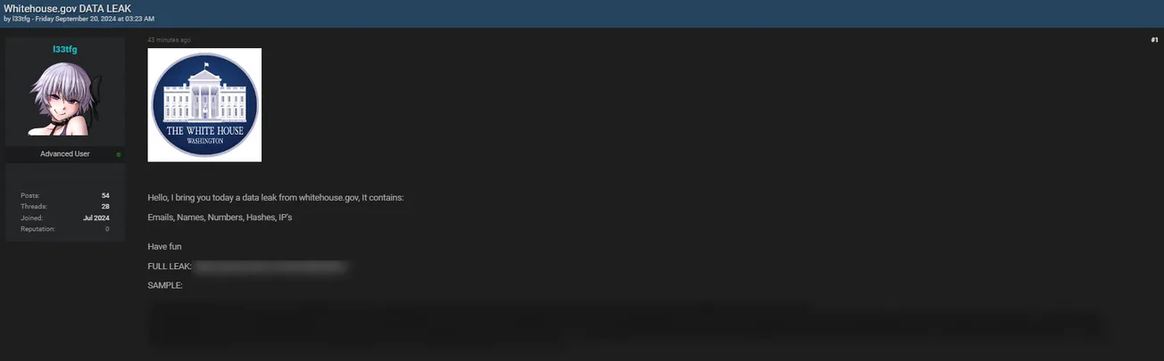 A Threat Actor has Allegedly Leaked Data from The White House