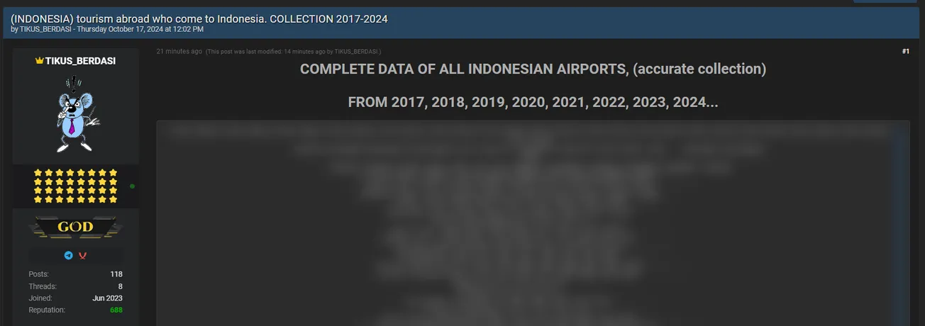 🚨 Title: Indonesian AIRPORTS data allegedly leaked