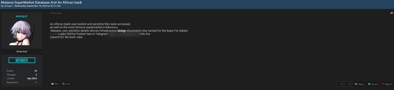 A Threat Actor has Allegedly Leaked Data of Marjane