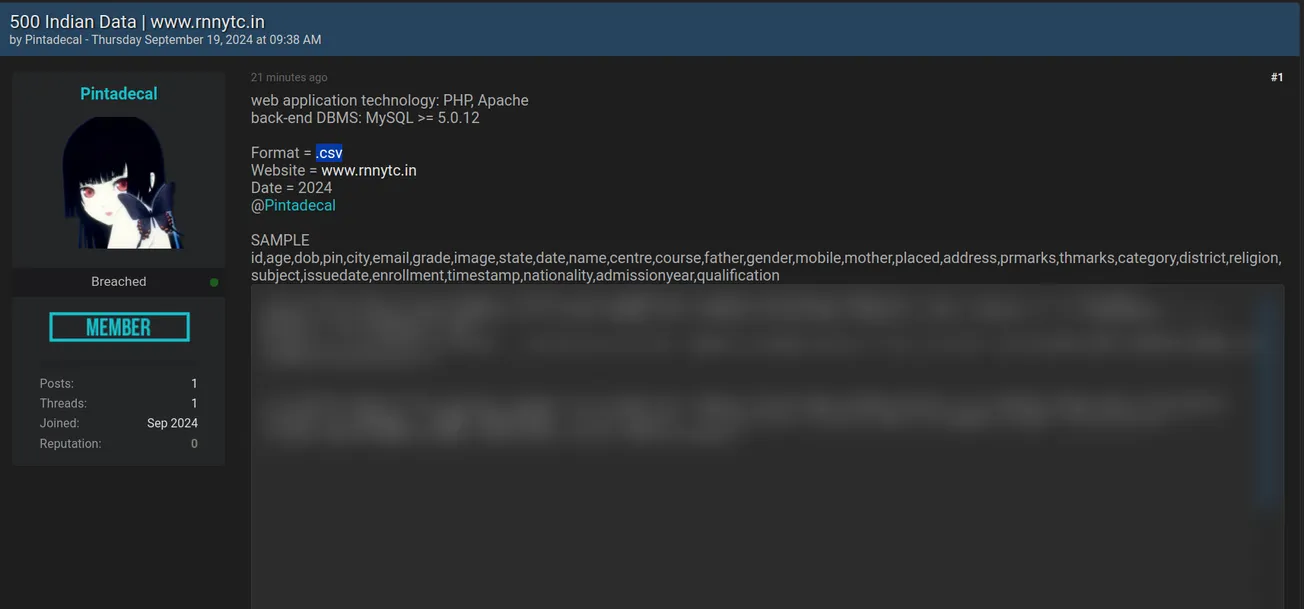 A Threat Actor has Allegedly Leaked Data of Rabindra Nath National Youth Training Centre