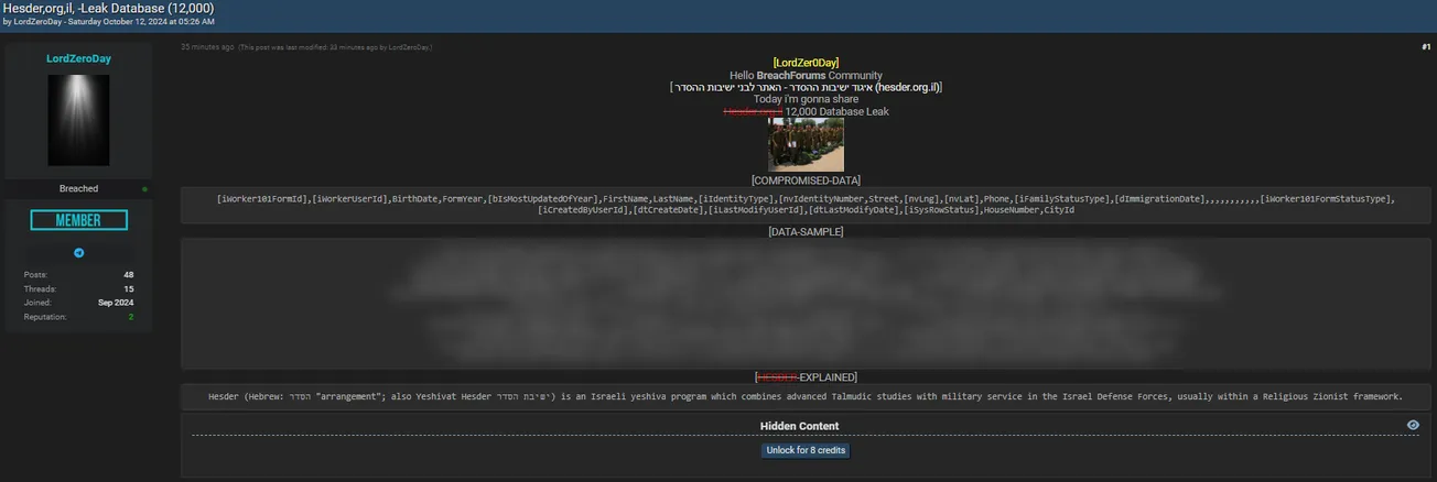 A Threat Actor has Allegedly Leaked Data of The Hesder Yeshiva Union