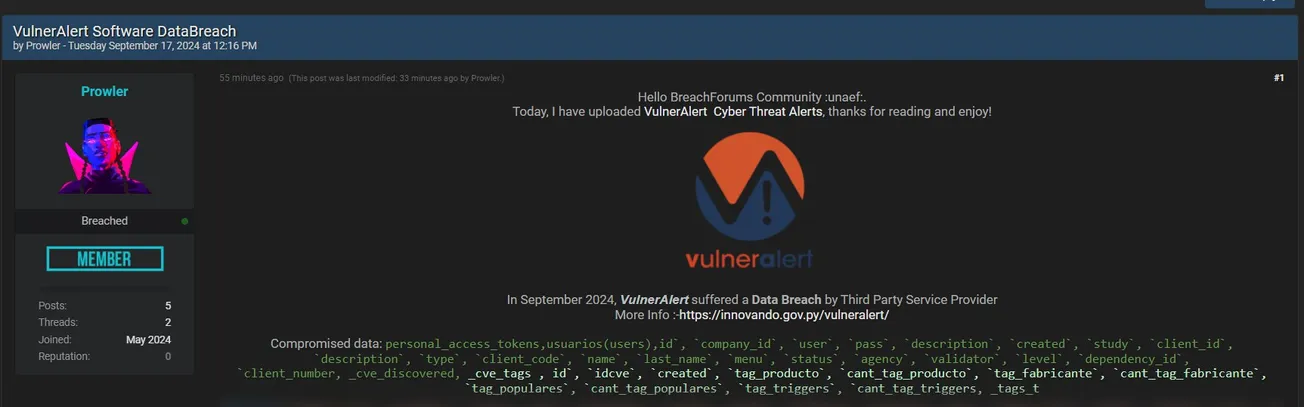 A Threat Actor has Allegedly Leaked Data of VulnerAlert