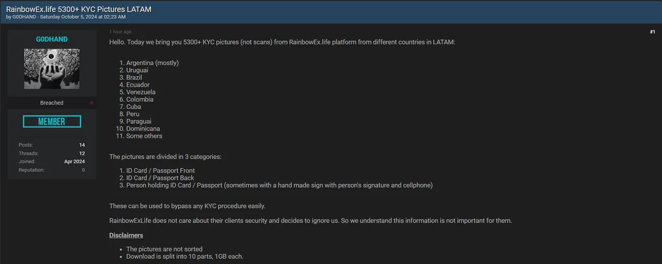 A Threat Actor has Allegedly Leaked KYC Pictures from RainbowEx