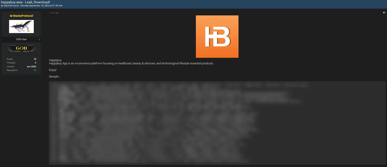 A Threat Actor has Allegedly Leaked the Data of HappyBuy