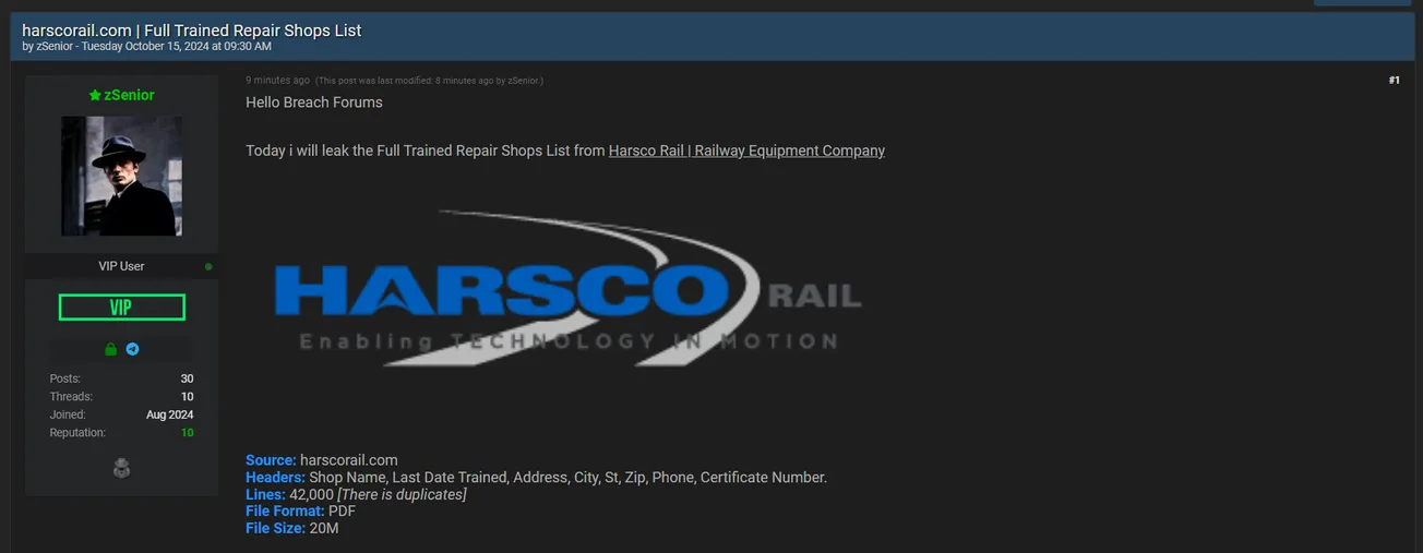 🚨 Title: Alleged data leak of Harsco Rail