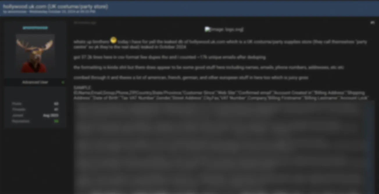 A Threat Actor has Allegedly Leaked the Data of Hollywood Fancy Dress