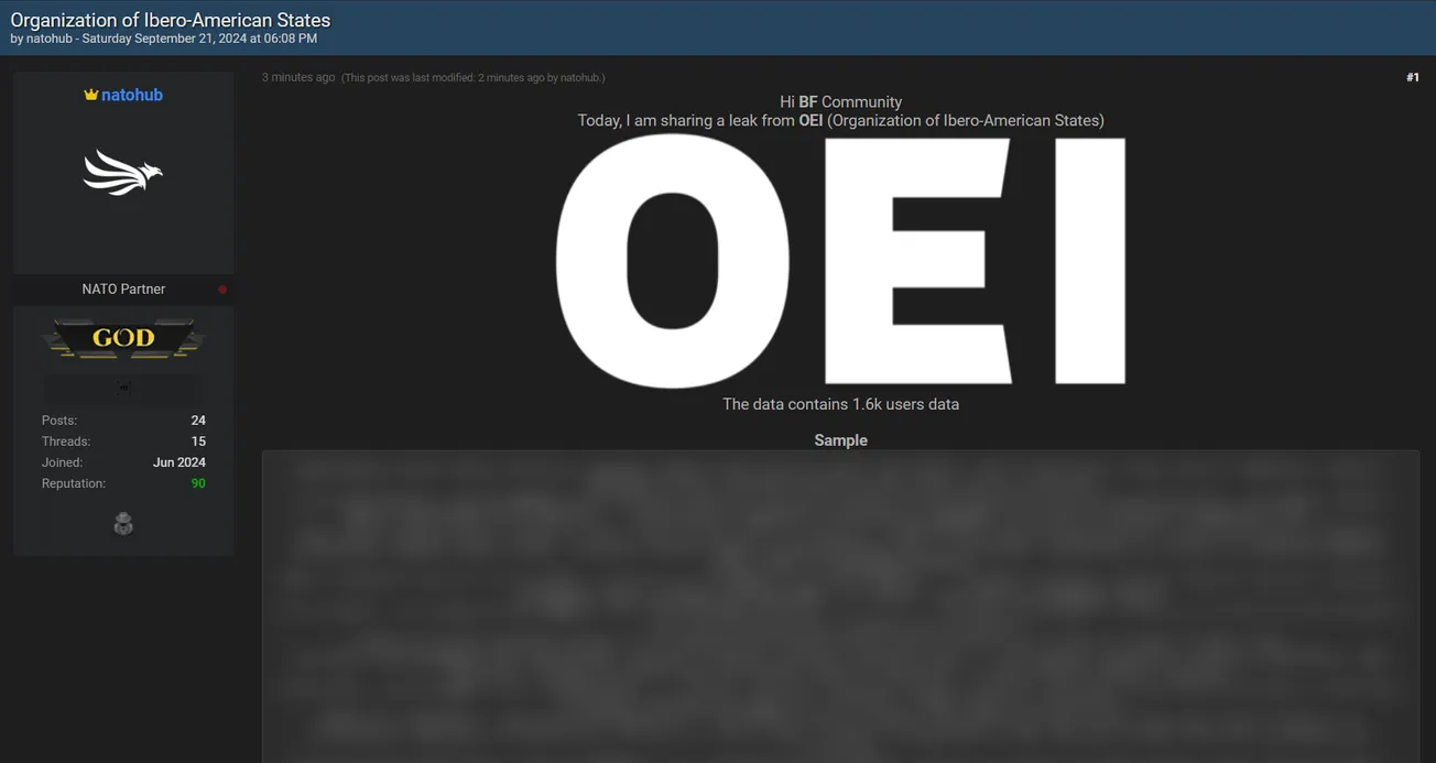 🚨 Title: Organization of Ibero-American States users data allegedly leaked