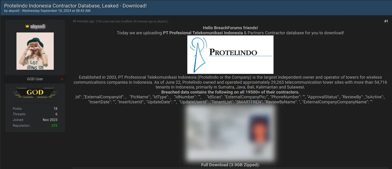 A Threat Actor has Allegedly Leaked the Database of Protelindo Contractor