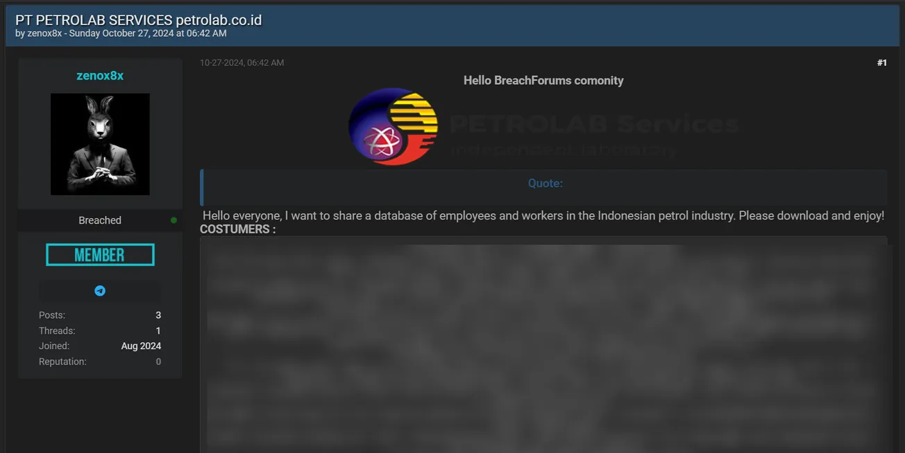A Threat Actor has Allegedly Leaked the Database of PT PETROLAB SERVICES