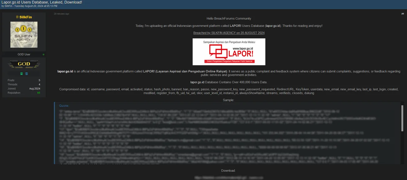 lapor.go.id Database Contains Over 400,000 Users Data.
