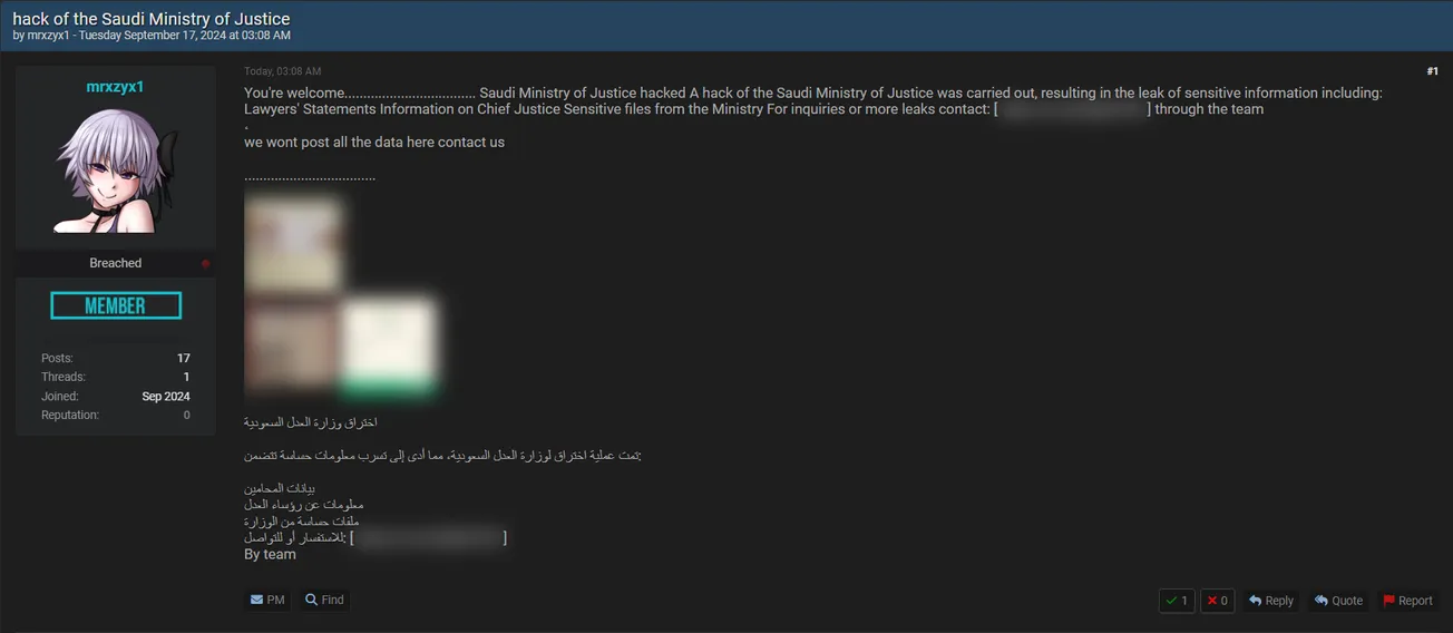 A Threat Actor has Allegedly Leaked the Saudi Ministry of Justice Data