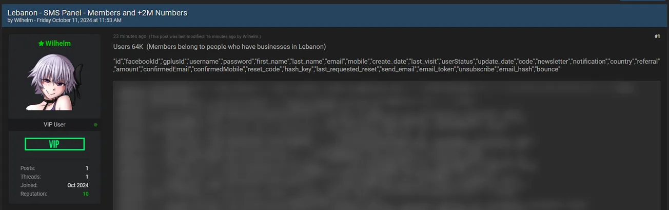 A Threat Actor has Allegedly Leaked the SMS Panel of a Lebanon Organisation