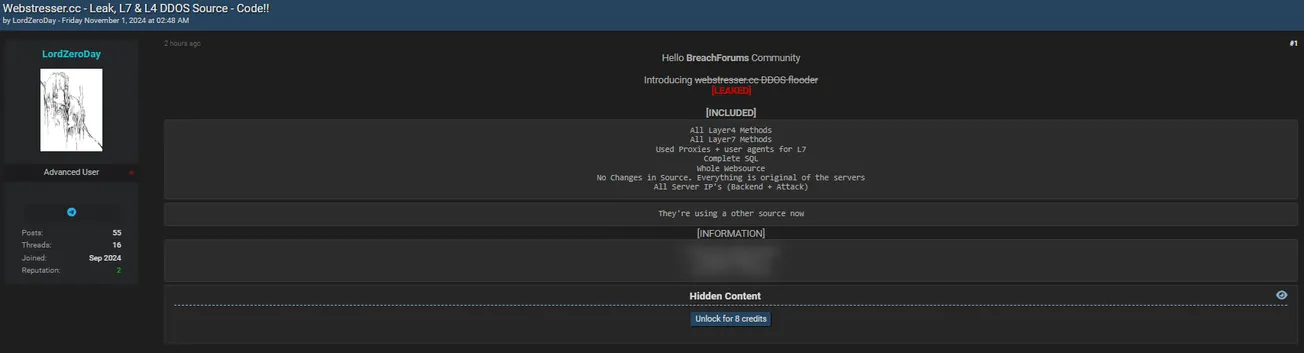 A Threat Actor Has Allegedly Leaked the Webstresser[.]cc Source Code