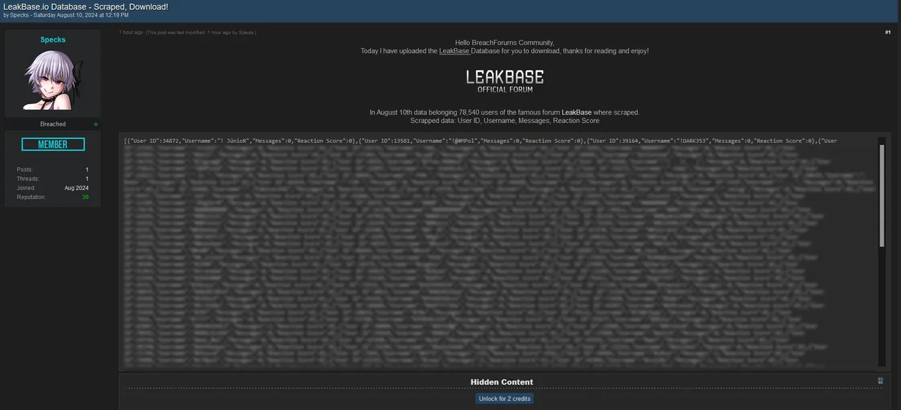 A Threat Actor Has Allegedly Scraped the Data belonging to the Forum LeakBase
