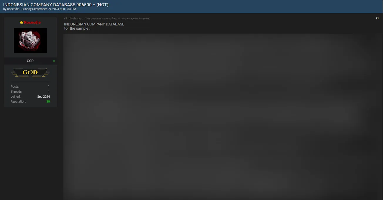 A Threat Actor has Leaked a Database of an Indonesian Company