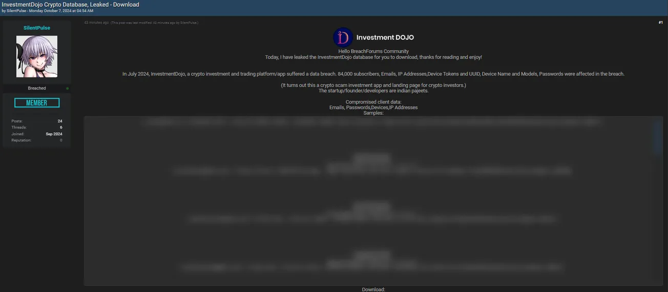🚨 Title: Alleged data leak of Investment DOJO