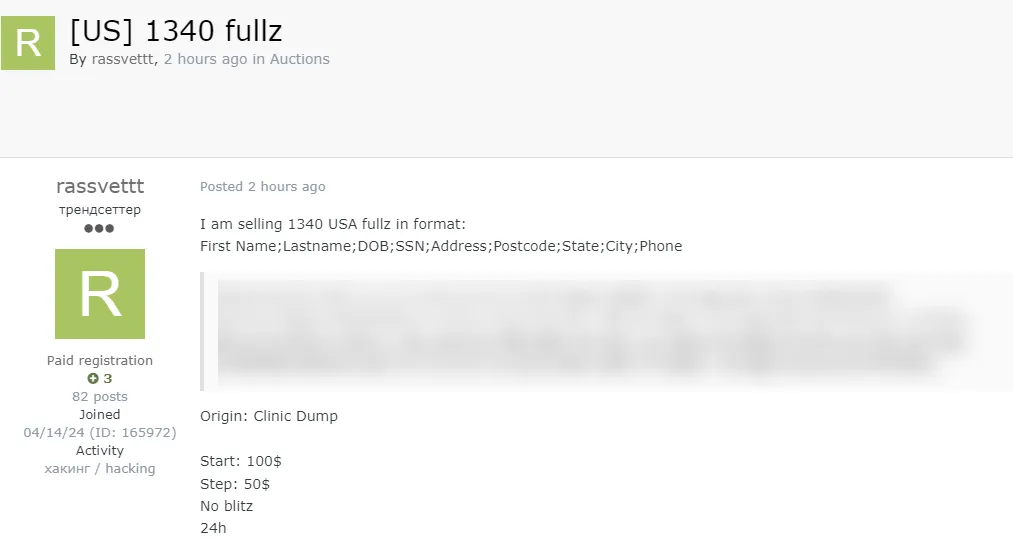 A Threat Actor is Allegedly Selling 1,340 FULLZ on US Citizens