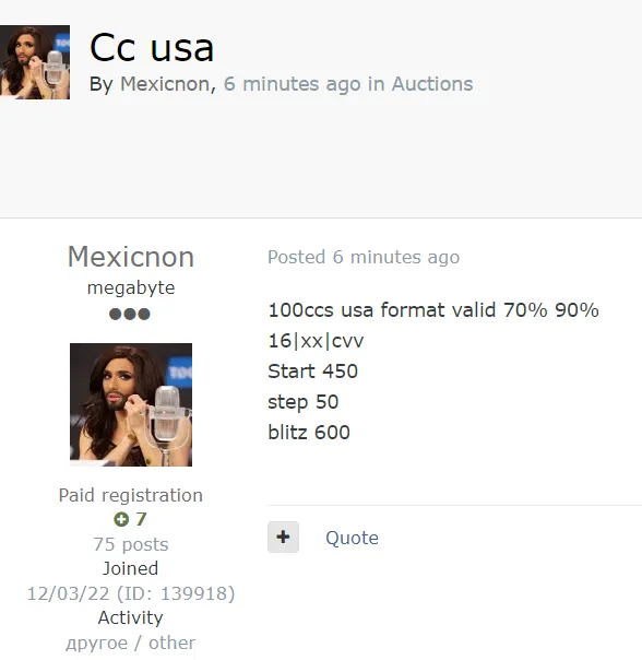 A Threat Actor is Allegedly Selling 100 CCs From the USA