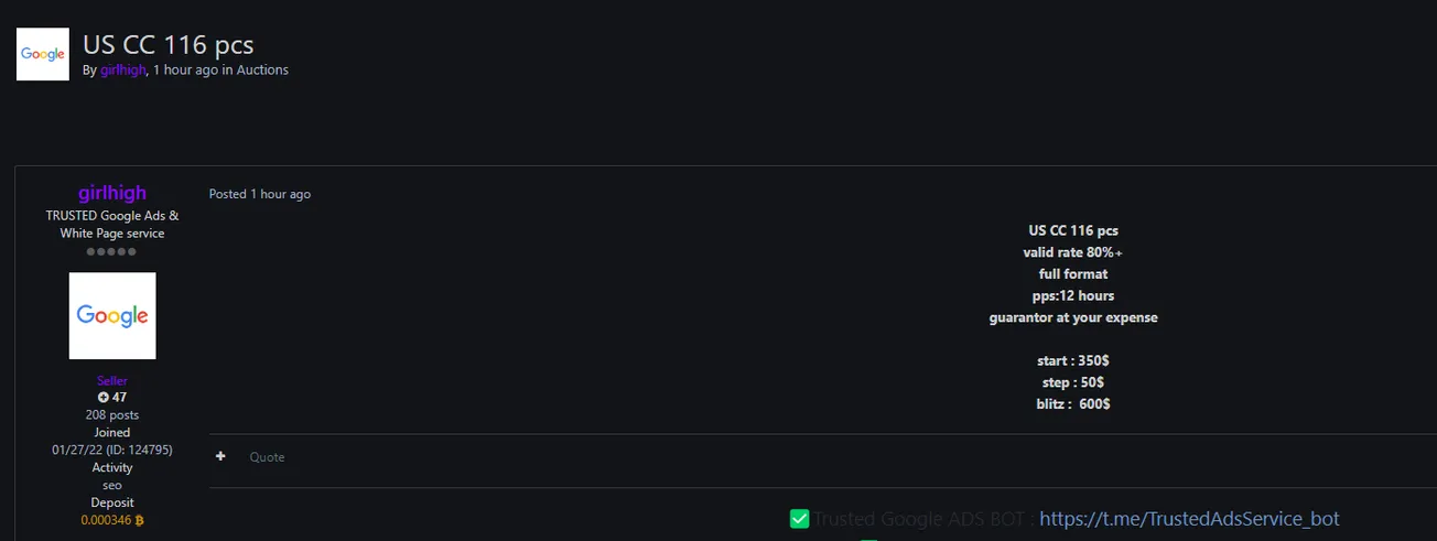 🚨 Title: Alleged sale of 116 US CC data