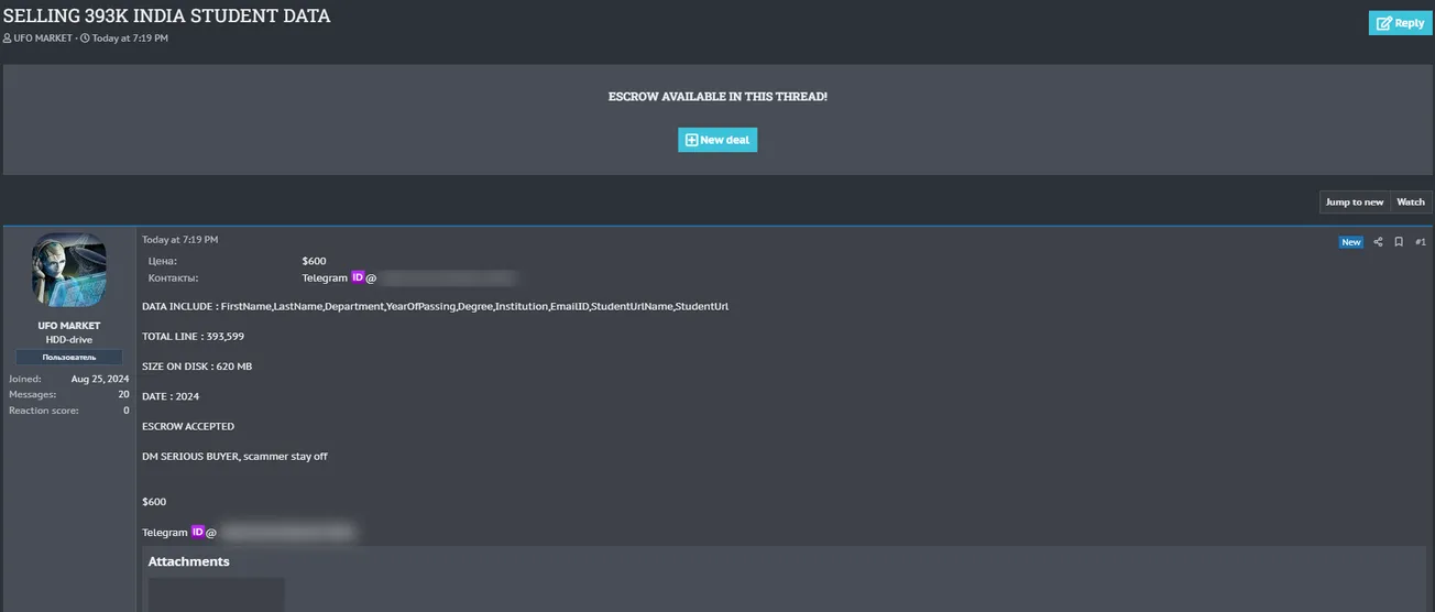 A Threat Actor is Allegedly Selling 393K Lines of India Student Data