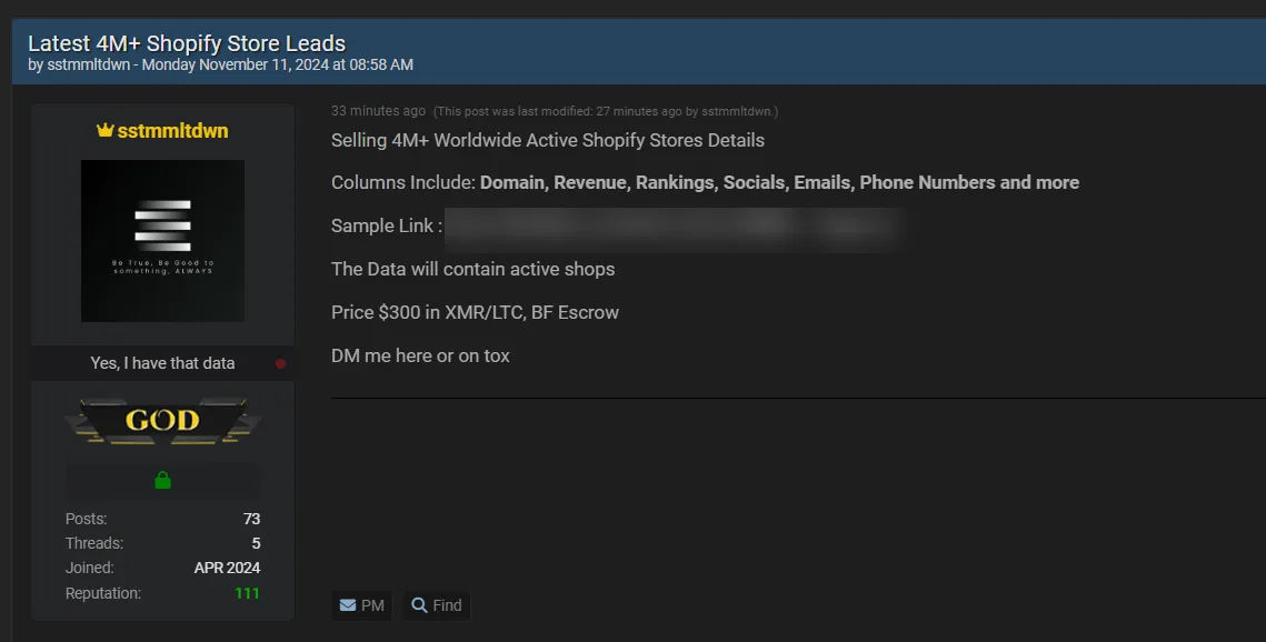 A Threat Actor is Allegedly Selling 4 Million Shopify Store Leads