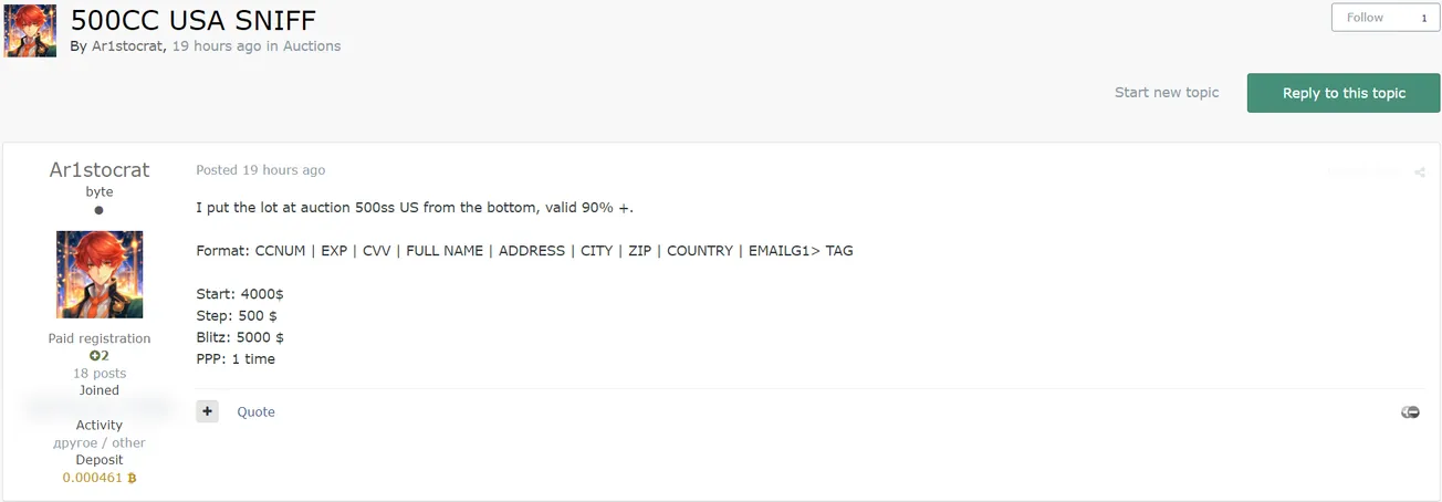 A Threat Actor is Allegedly Selling 500 CC from USA