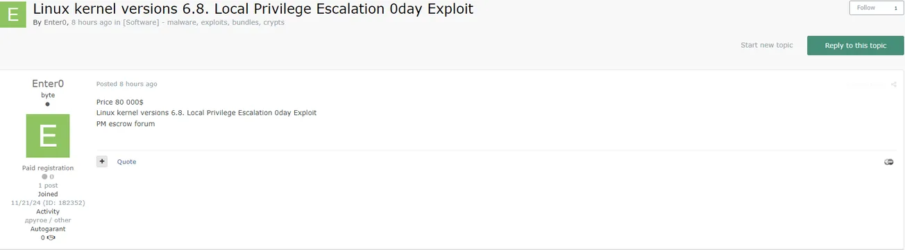 A Threat Actor is Allegedly Selling a Linux Kernel 0-day Exploit