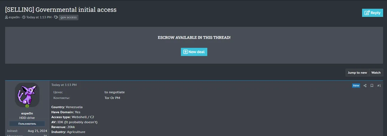 A Threat Actor is Allegedly Selling Access of a Venezuela Government Website