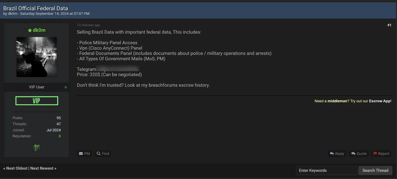 🚨A Threat Actor is Allegedly Selling Access of Brazil Official Federal