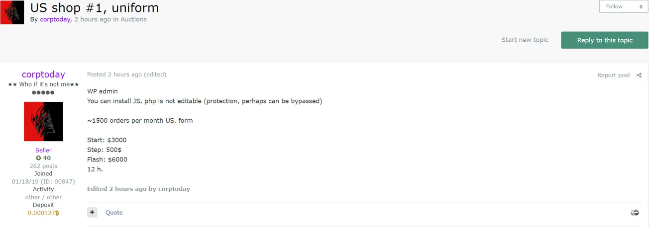 A Threat Actor is Allegedly Selling Access to a USA Shop