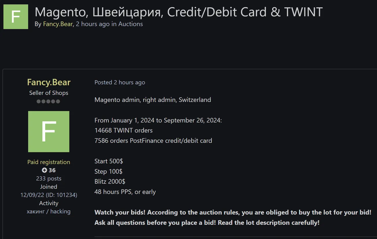 A Threat Actor is Allegedly Selling Access to an Unidentified Company in Switzerland
