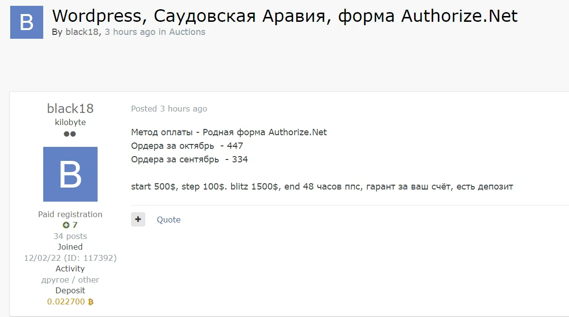 A Threat Actor is Allegedly Selling Access to an Unidentified WordPress site in Saudi Arabia