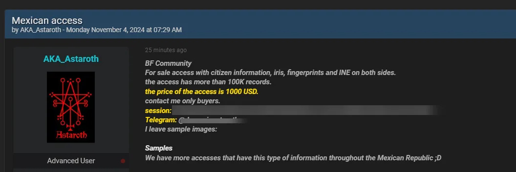 🚨 Title: Alleged access sale to an unidentified Mexican organization