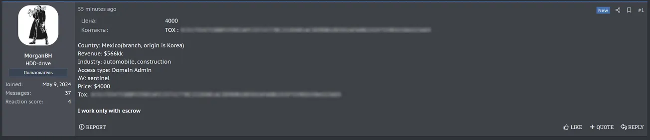 A Threat Actor is Allegedly Selling Access to an Unknown Organization in Mexico