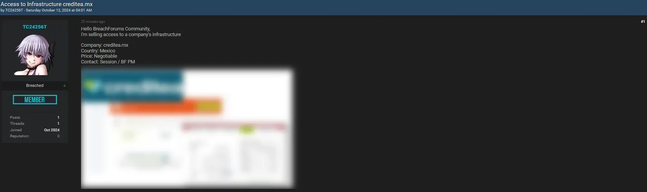 🚨 Title: Alleged sale of unauthorized access to Creditea