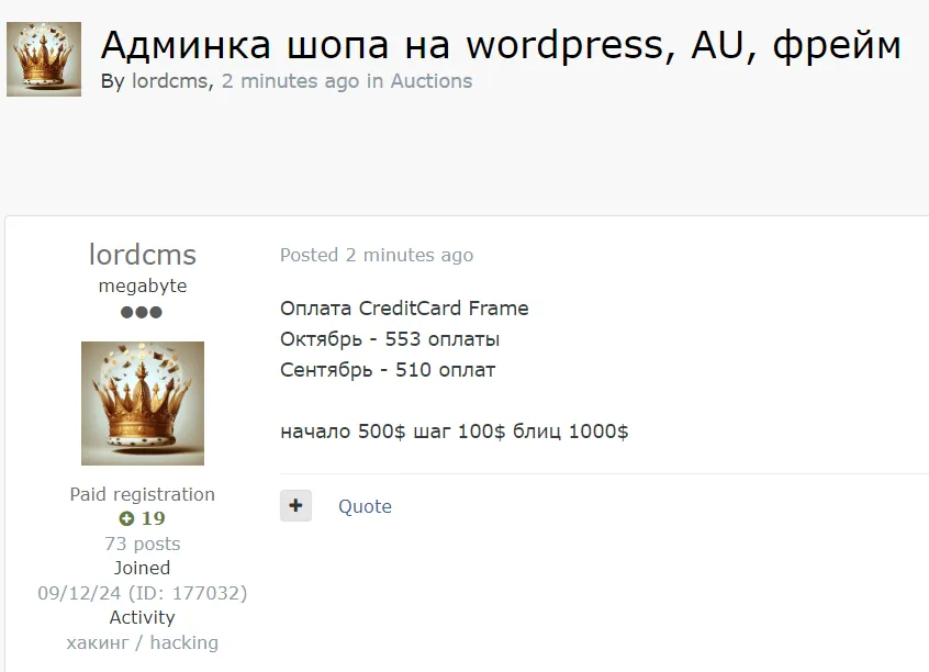 A Threat Actor is Allegedly Selling Admin Access of an Unidentified Shop in Australia