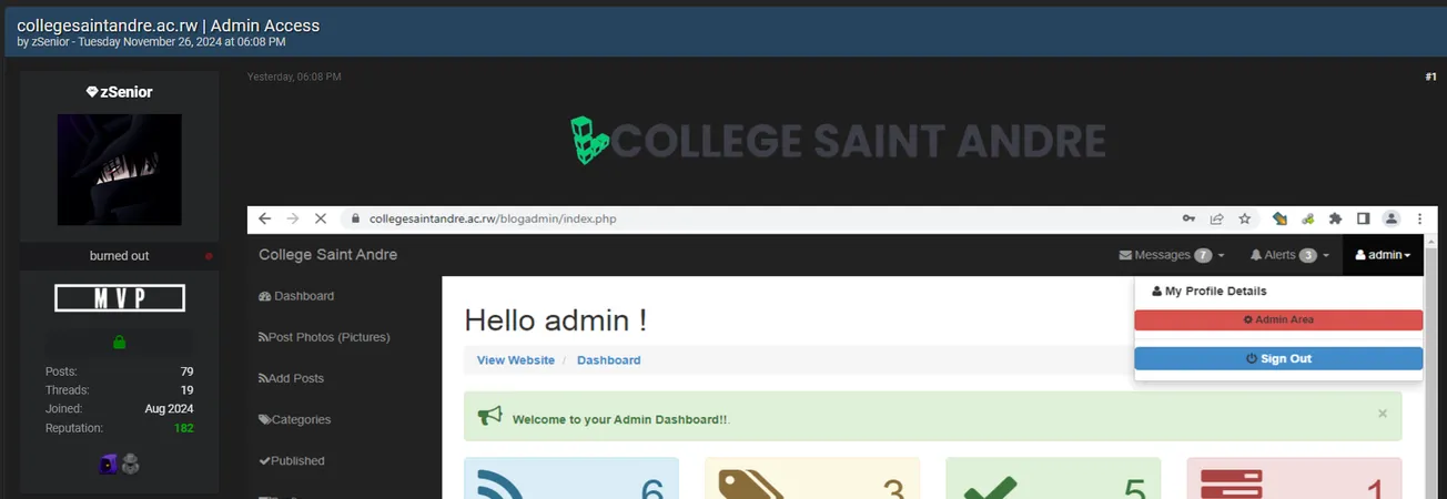 A Threat Actor is Allegedly Selling Admin Access of College Saint Andre