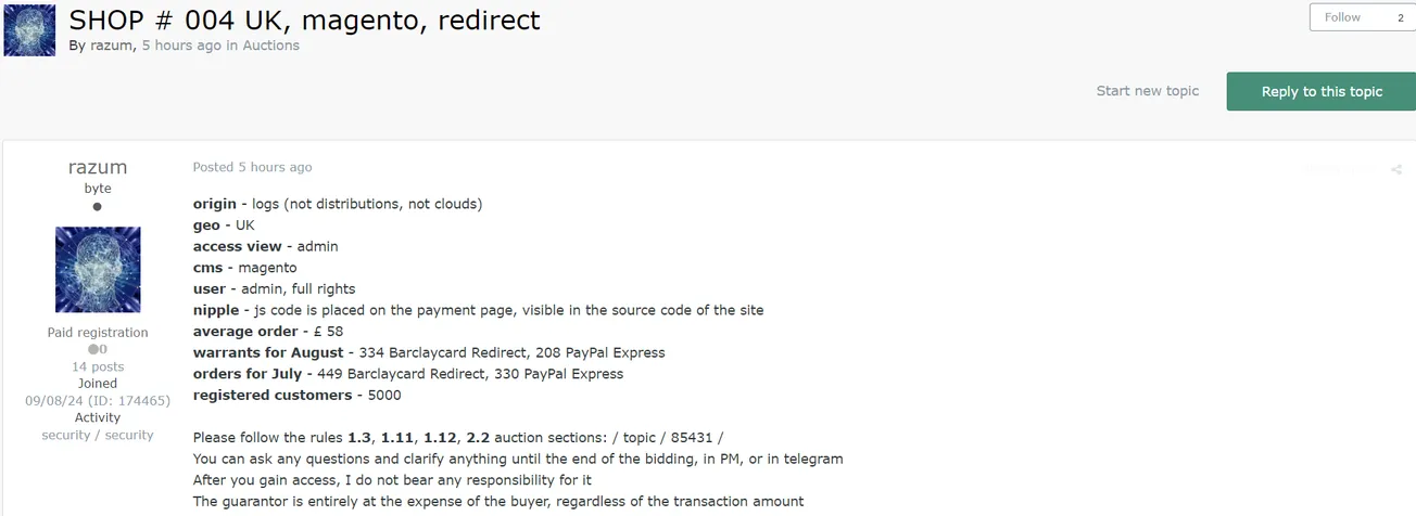 - Please follow the rules 1.3, 1.11, 1.12, 2.2 of the auction sections: