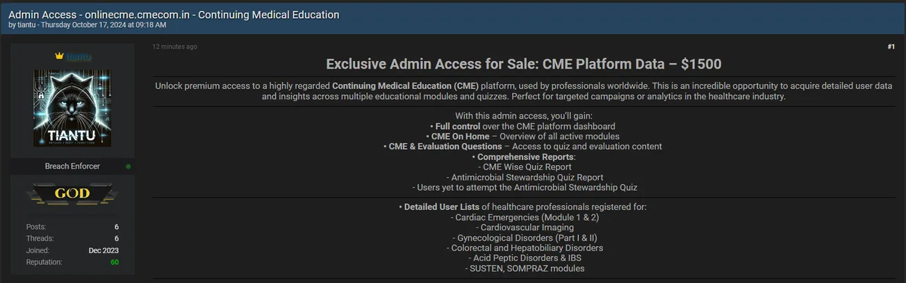 A Threat Actor is Allegedly Selling Admin Access to CME
