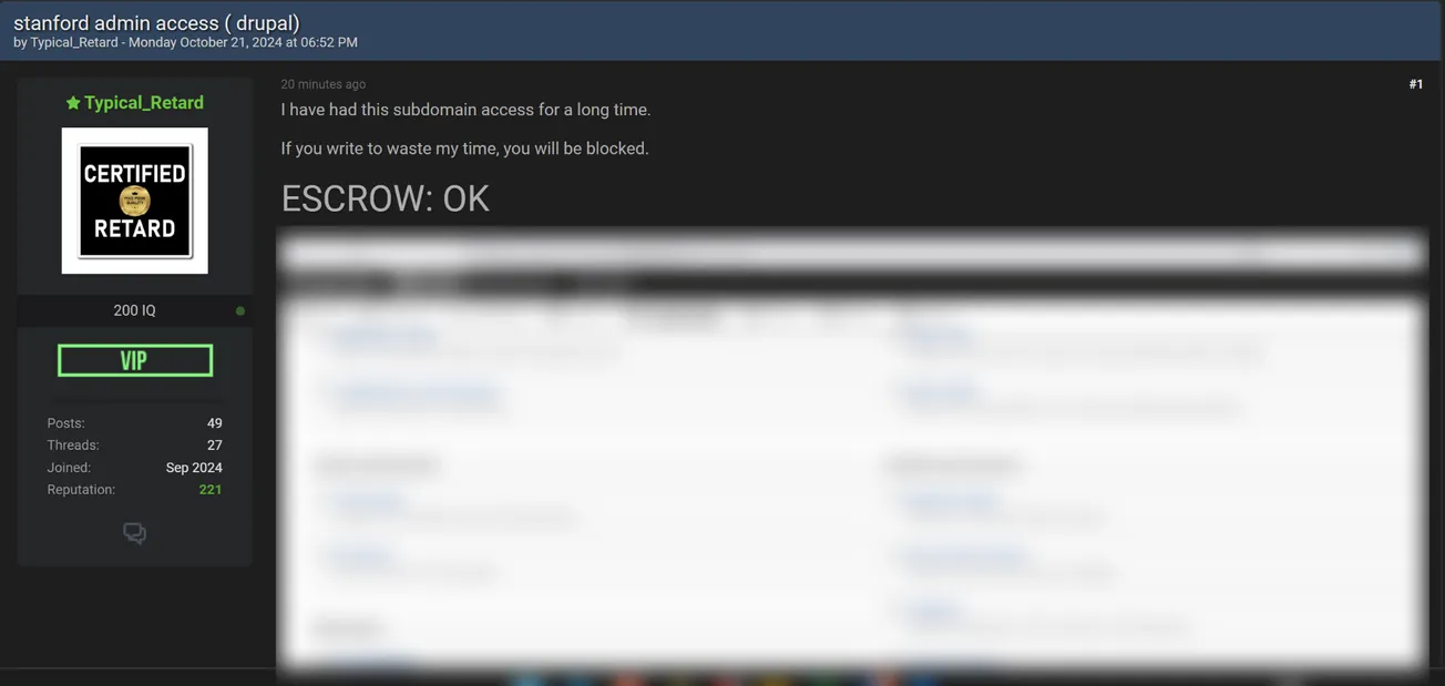 A Threat Actor is Allegedly Selling Admin Panel Access of Stanford University