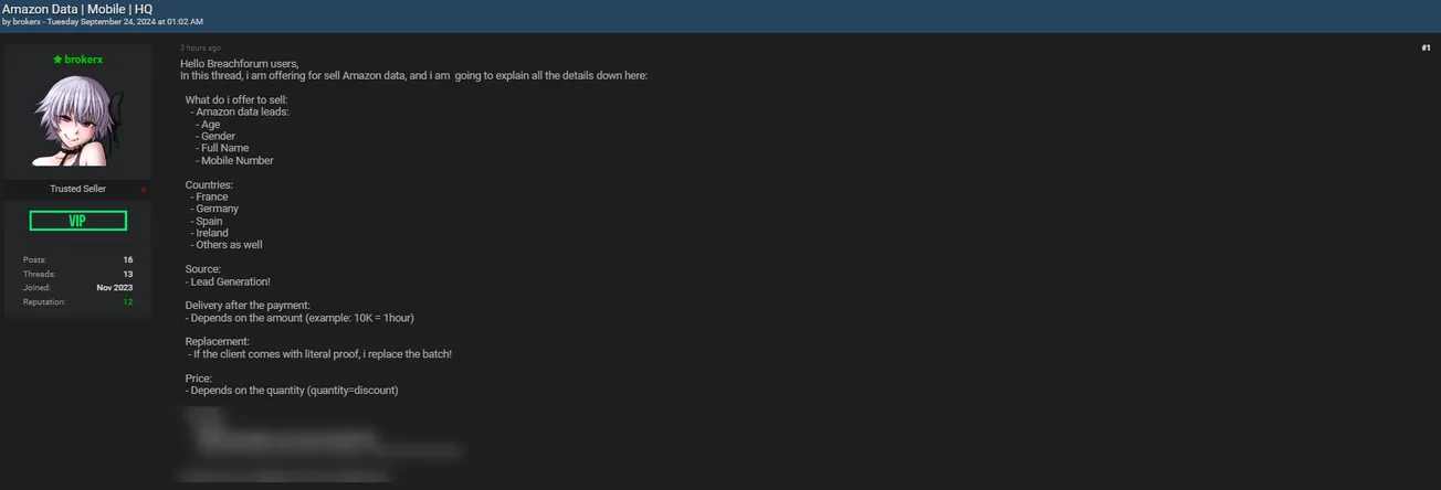 A Threat Actor is Allegedly Selling Amazon Lead Data