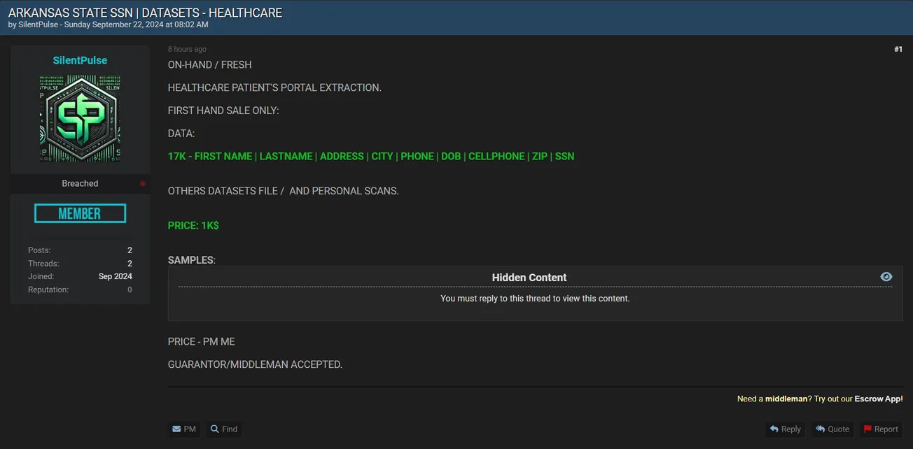 A Threat Actor is Allegedly Selling Arkansas USA SSN Data