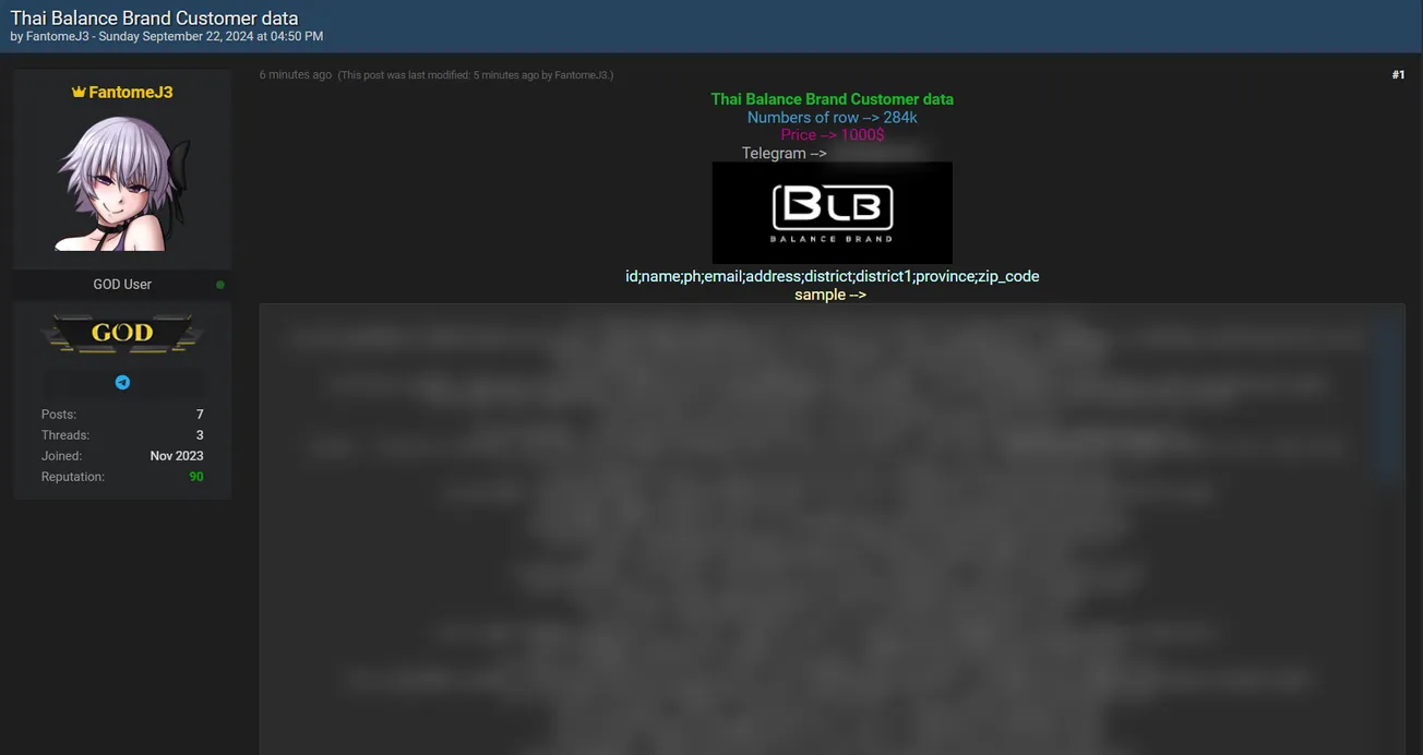 A Threat Actor is Allegedly Selling Balance Brand Customer Data