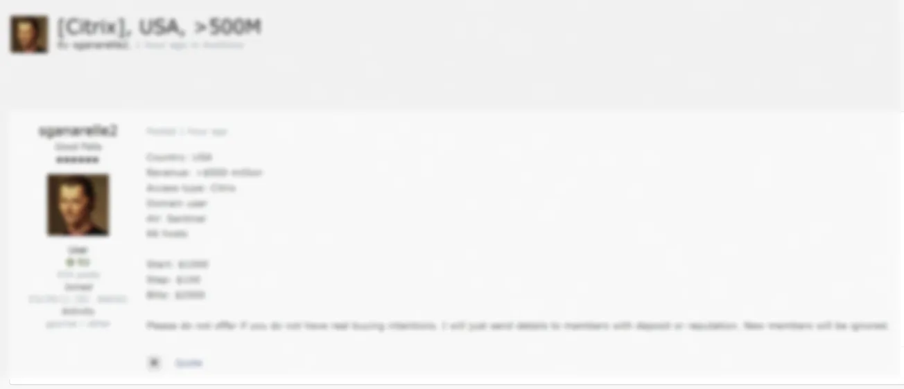 A Threat Actor is Allegedly Selling Citrix Access to an Unidentified Company in the USA