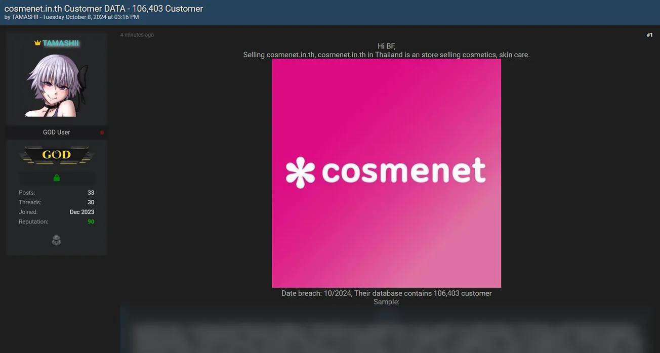 A Threat Actor is Allegedly Selling Customer Data of Cosmenet